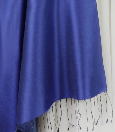 Granatowy delikatny szal jedwabny.