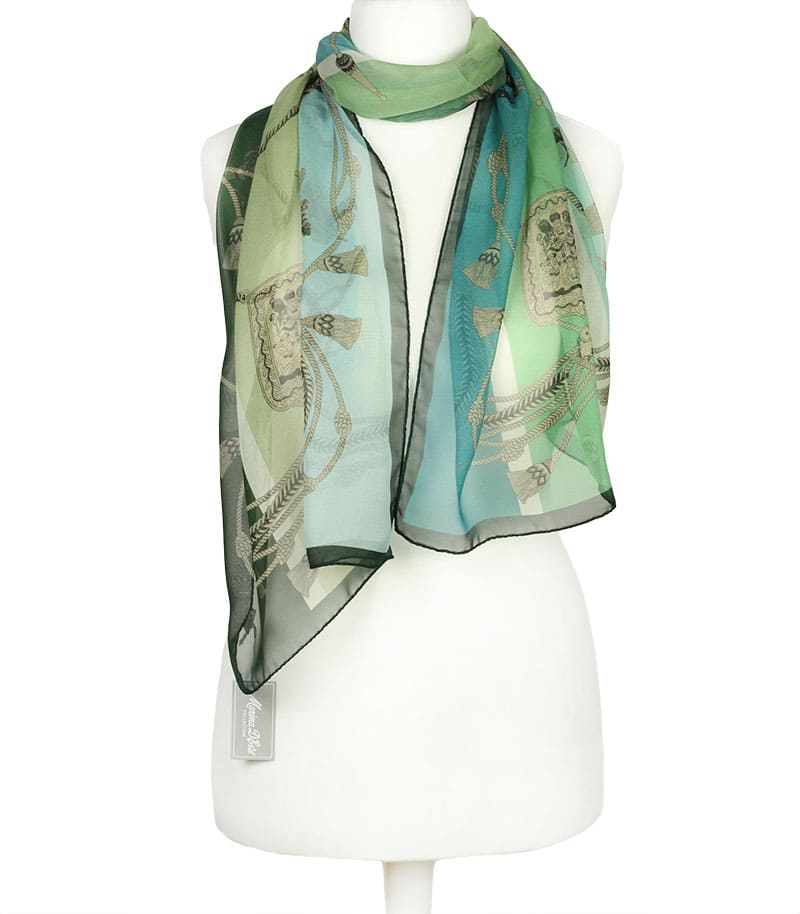 beżowo-zielony włoski jedwabny szalik,