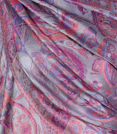 Szal z jedwabiu dwustronny w rozmiarze 70x200cm. Szal ten doskonale się układa, jest zwiewny i delikatny. Idealny do eleganckich stylizacji wiosenno – letnich, biznesowych lub codziennych. Może być dodatkiem do sukni wieczorowej lub marynarki i jeansów w stylu sportowym Włókno jedwabiu jest delikatne, bardzo lekkie o naturalnym połysku. Szal ze wzorem jamawar. Szal zakończony frędzlami.