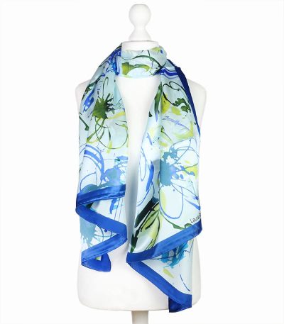 Szal jedwabny włoski w kolorze niebieskim wzór nowoczesny.