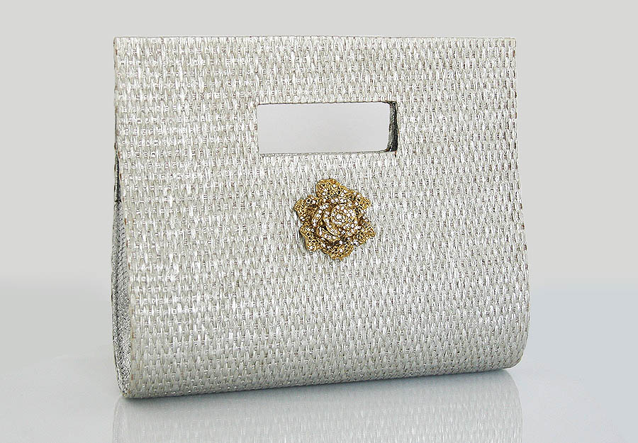 Torebka zdobiona cyrkoniami, w kolorze srebrnym