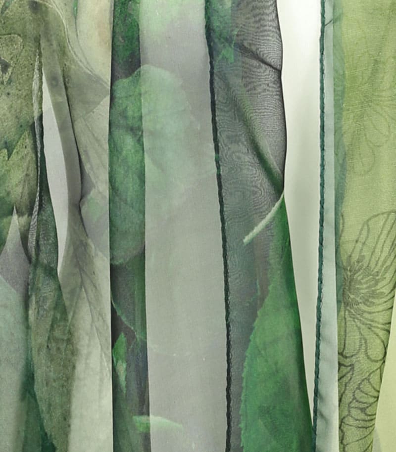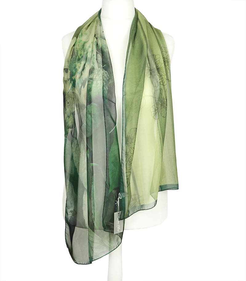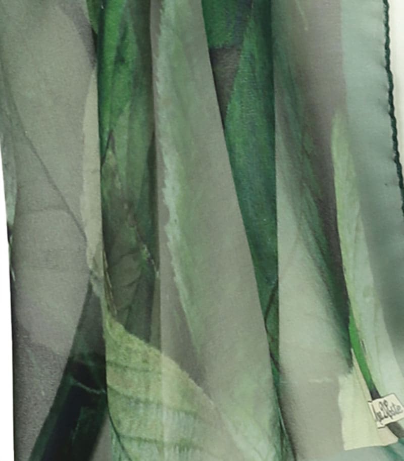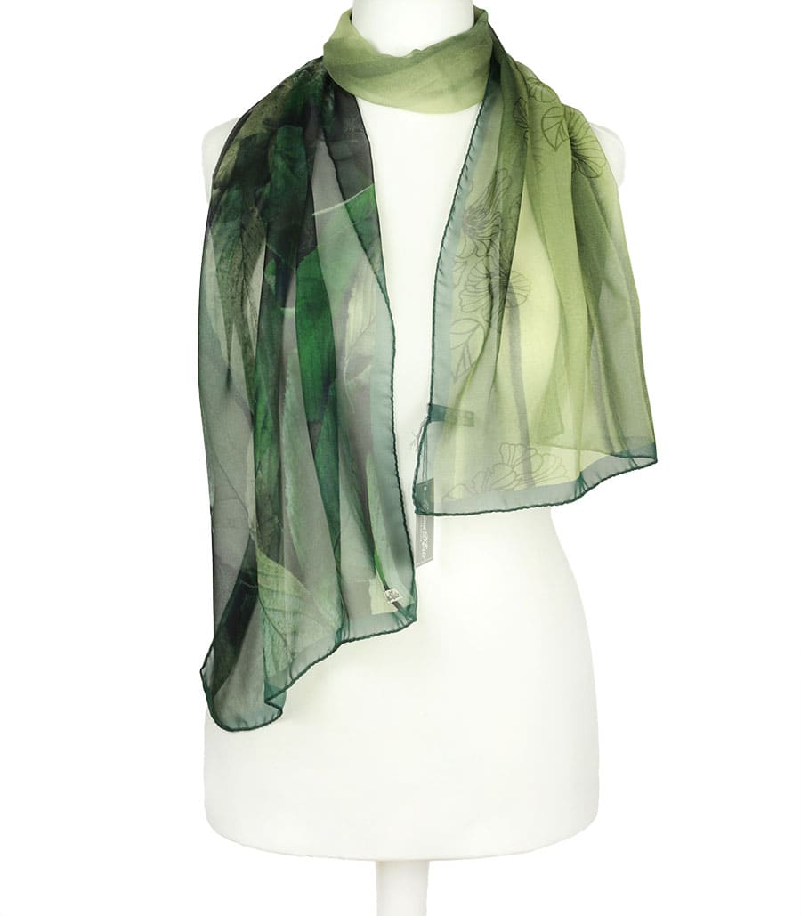 Zielony szalik jedwabny z eleganckim wzorem liści